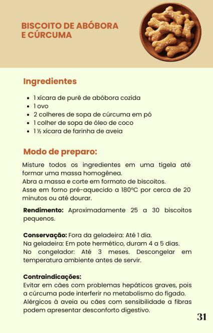 O ebook oferece uma variedade de receitas, com diferentes texturas e sabores, justamente para que você possa testar e descobrir quais são os favoritos do seu cão. Seja crocante, macio ou frutado, tem algo que vai agradar até os cães mais exigentes!